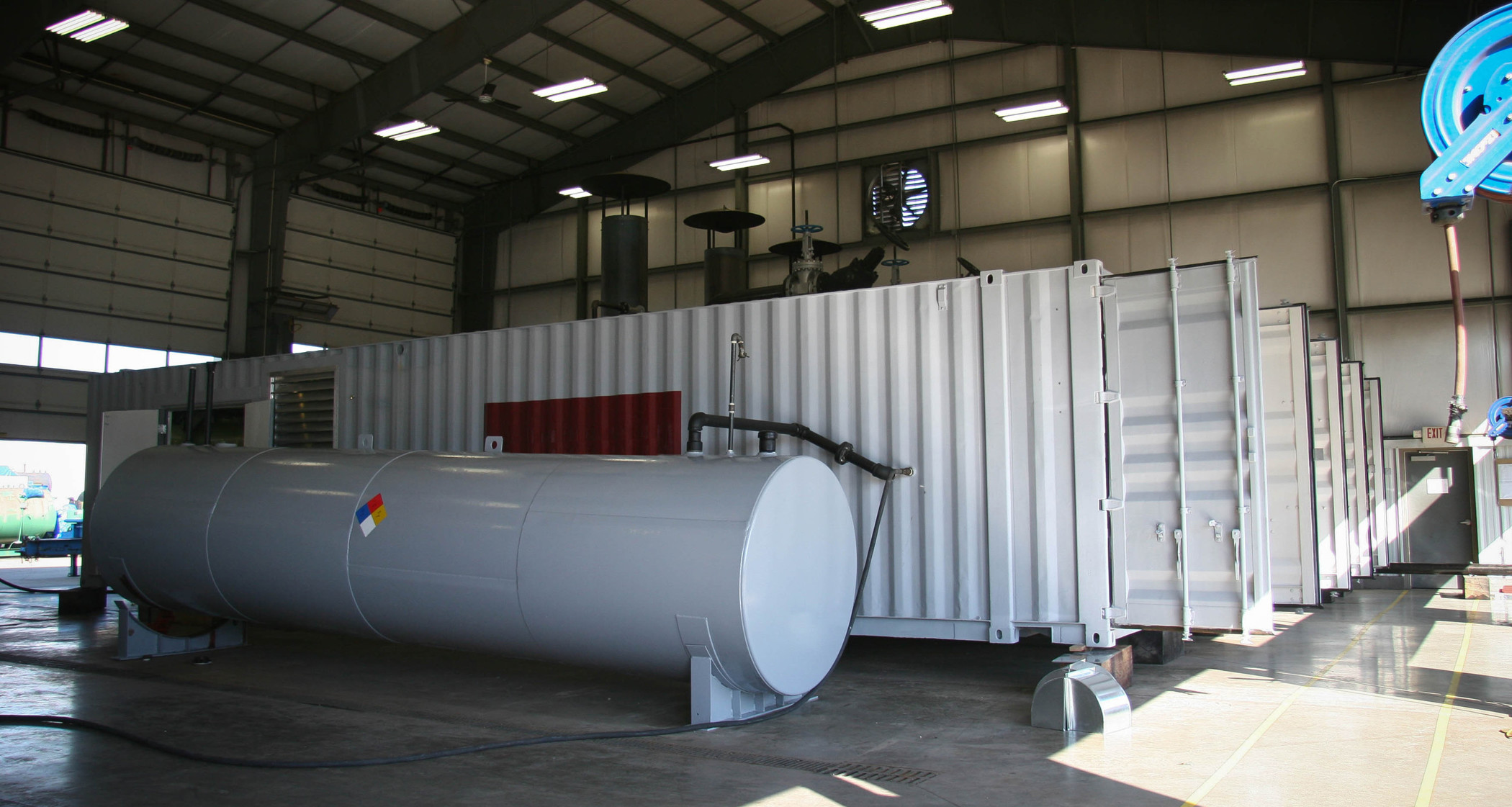 Containerized boiler systems are self-contained, and can be transported with any logistics system capable of handling standard Conex containers. Once they arrive, they only require utility connections, steam hookups, and a place for safe draining of the blowdown. They include: